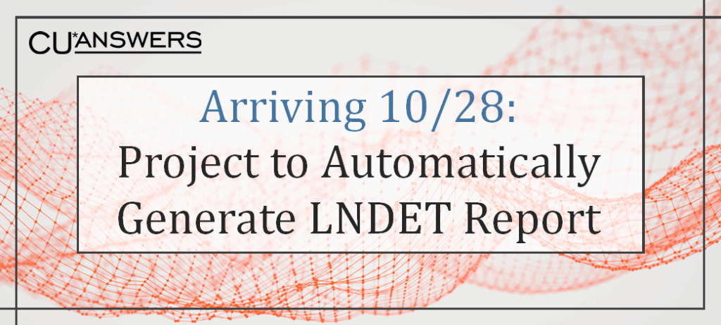 On Tuesday, October 28th, we will be deploying Project #64454, which will see the creation of the LNDET report as the last step of the Share Draft posting process and place it in the DAILYXX for all credit unions.
