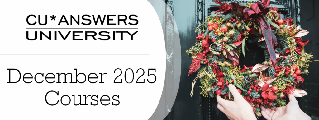 Each month, CU*Answers University hosts FREE web conferences that highlight the many products and services our CUSO offers. Take a look at the courses we have coming up in December!