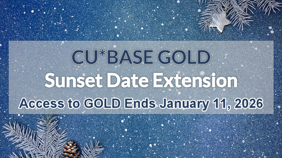 After careful thought and consideration, we have decided to extend access to CU*BASE GOLD for one additional week, concluding access to GOLD on January 11, 2026.